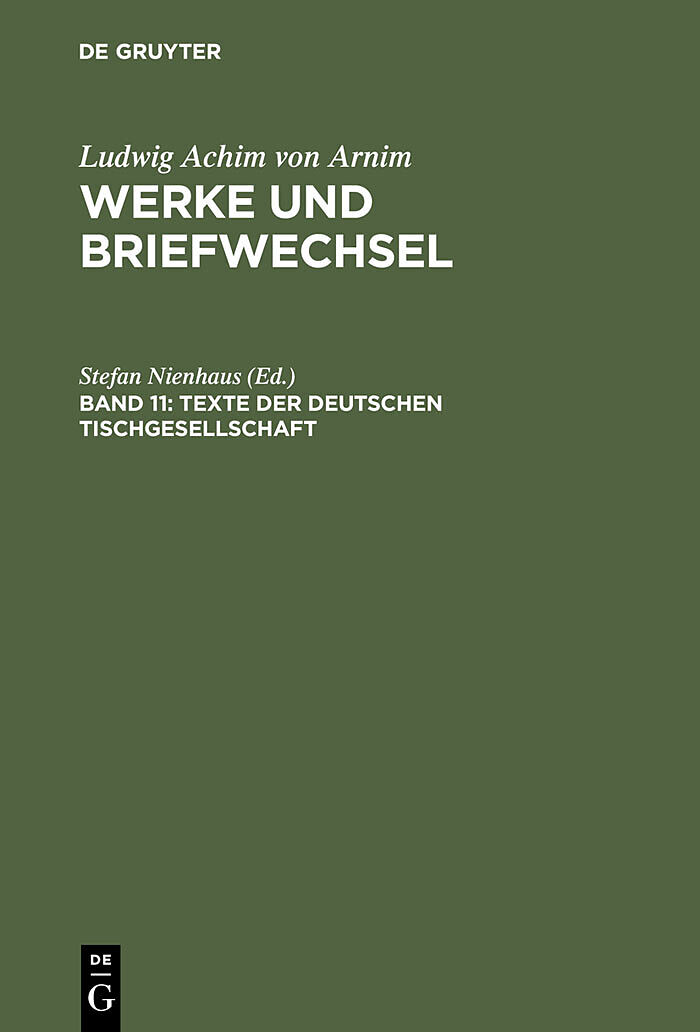 This is the first attempt ever made to provide a comprehensive portrayal of the Deutsche Tischgesellschaft founded by Achim von Arnim (17811831) and existing from 1811 to at least 1834. This Berlin society contributed decisively to the 'invention of the Germa...