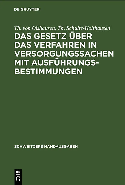 Frontmatter -- Vorwort zur 2. Auflage -- Inhaltsübersicht -- Abkürzungen -- Einleitung -- Gesetz über das Verfahren in Versorgungssachen vom 10. Januar 1922 -- Erster Teil. Versorgungsbehörden -- Zweiter Teil. Versorgungsverfahren -- Dritter Teil -- Anlagen --...