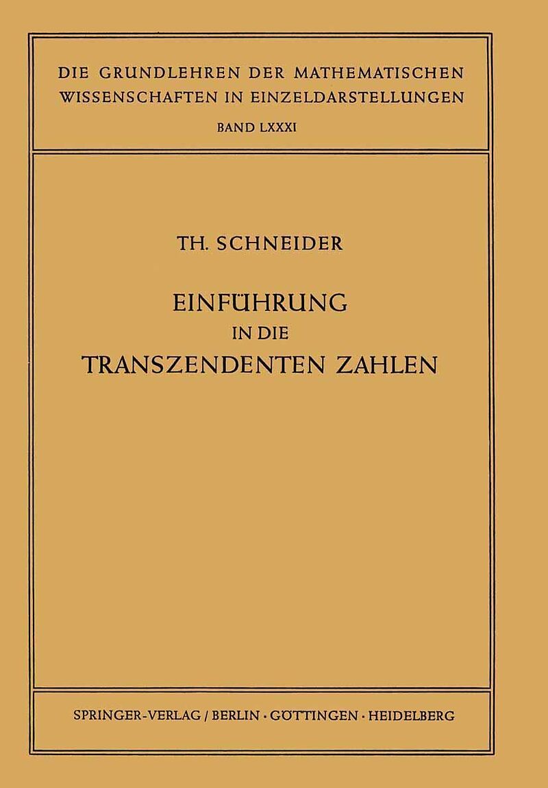 Inhalt I. Kapitel. Konstruktion transzendenter Zahlen.- 1. Der LIOUVILLEsche Approximationssatz.- 2. LIOUVILLEsche transzendente Zahlen.- 3. Verallgemeinerung des LIOUVILLEschen Satzes.- 4. Eine Anwendung des verallgemeinerten LIOUVILLEschen Satzes.- 5. Schärf...