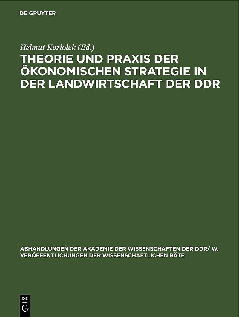 Dieser Titel, "Theorie und Praxis der ökonomischen Strategie in der Landwirtschaft der DDR", ist eine wissenschaftliche Publikation, erschienen bei De Gruyter Brill. Ausführliche Beschreibung, Inhaltsverzeichnis und weitere Angaben finden Sie auf der Verlagswe...