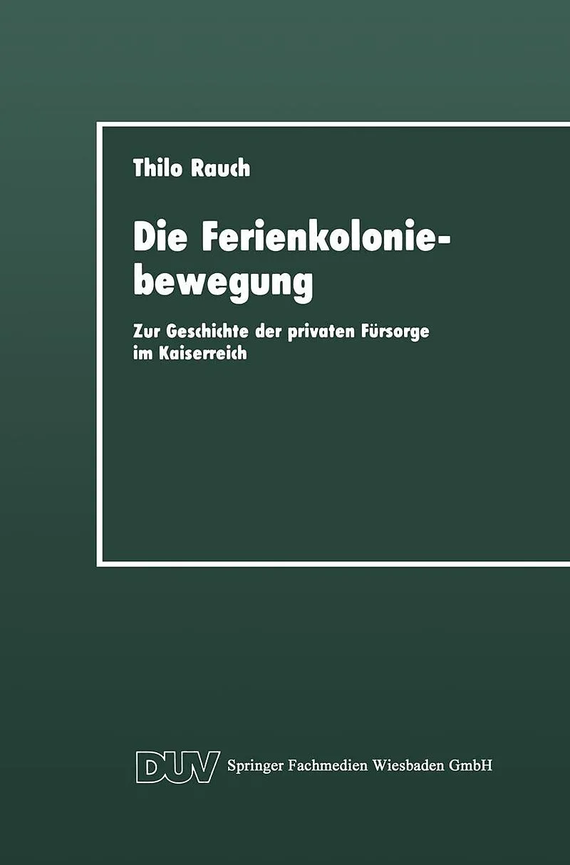 Inhalt 1. Einleitung.- 2. Private Fürsorge im 19. Jahrhundert.- 3. Politische und soziale Rahmenbedingungen der Ferienkoloniebewegung im Deutschen Reich.- 4. Entwicklung und Organisationsstruktur der Ferienkoloniebewegung.- 5. Freimaurerlogen und andere Träger...