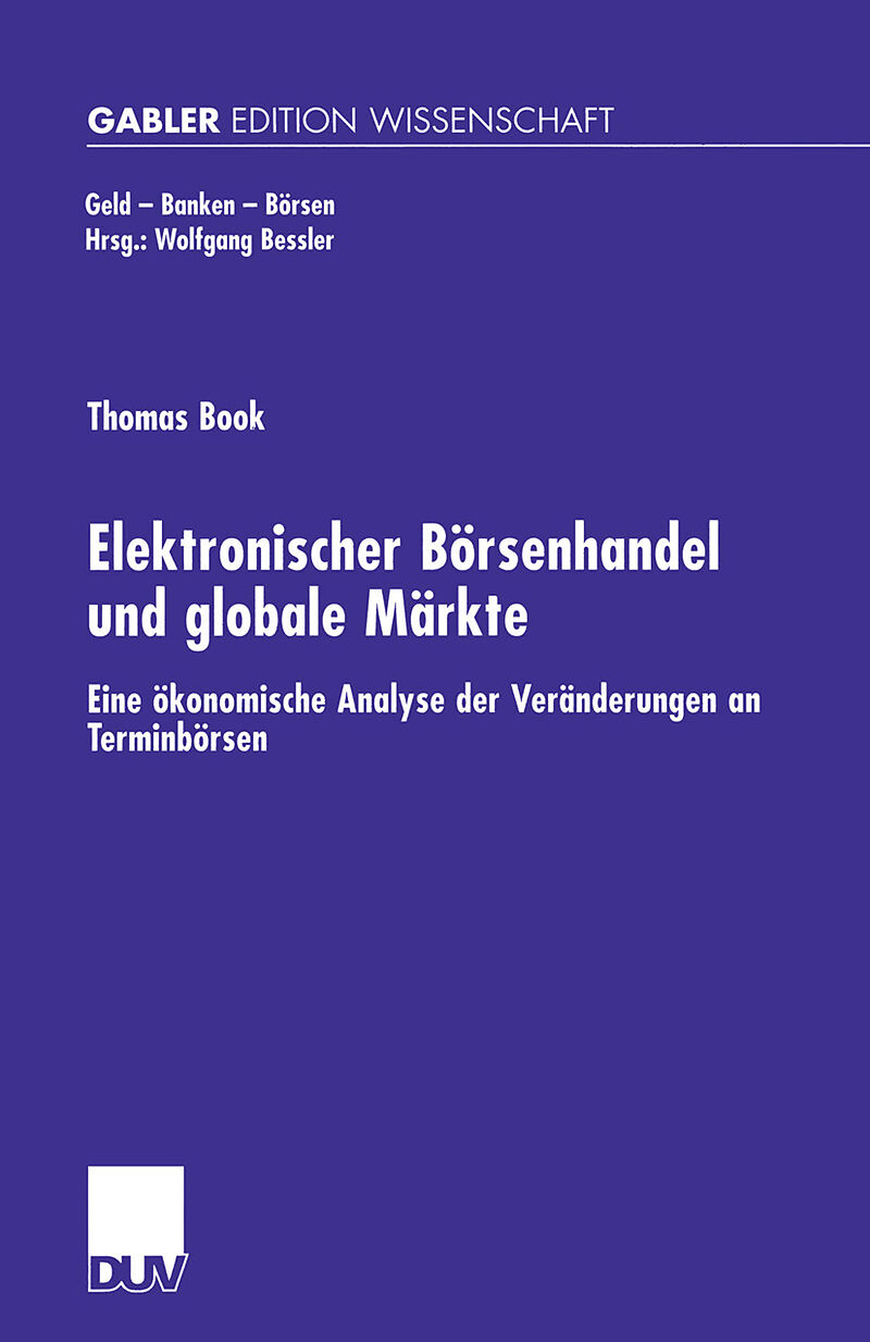 Die Organisation von Finanzmärkten hat durch die Einführung des elektronischen Börsenhandels sowie die Globalisierung in den letzten Jahren einen grundlegenden Wandel erfahren. Diese Veränderungen zeigen sich in einer Vielzahl von neuen elektronischen Handelss...