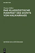 Dieser Titel, "Das klassizistische Manifest des Dionys von Halikarnass", ist eine wissenschaftliche Publikation, erschienen bei De Gruyter Brill. Ausführliche Beschreibung, Inhaltsverzeichnis und weitere Angaben finden Sie auf der Verlagswebsite: https://www.d...