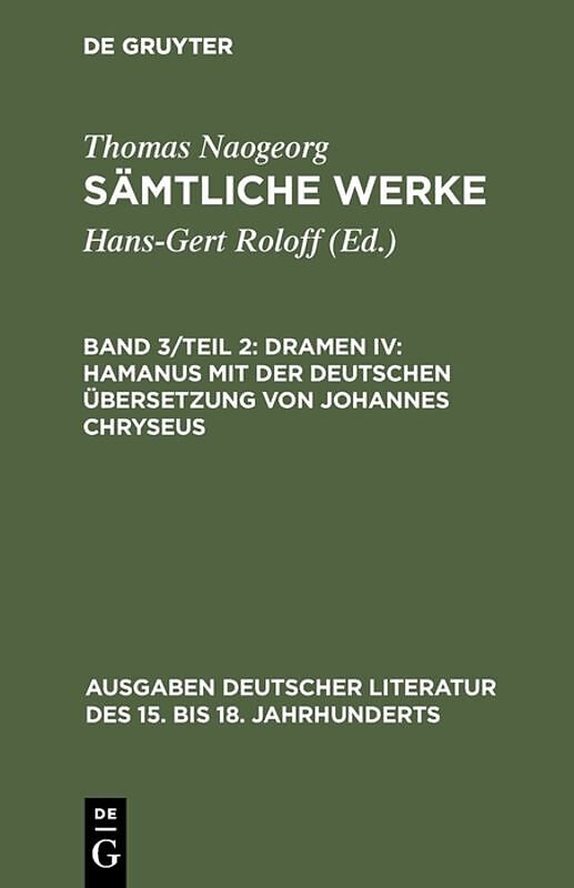 Dieser Titel, "Dramen IV: Hamanus mit der deutschen Übersetzung von Johannes Chryseus", ist eine wissenschaftliche Publikation, erschienen bei De Gruyter Brill. Ausführliche Beschreibung, Inhaltsverzeichnis und weitere Angaben finden Sie auf der Verlagswebsite...