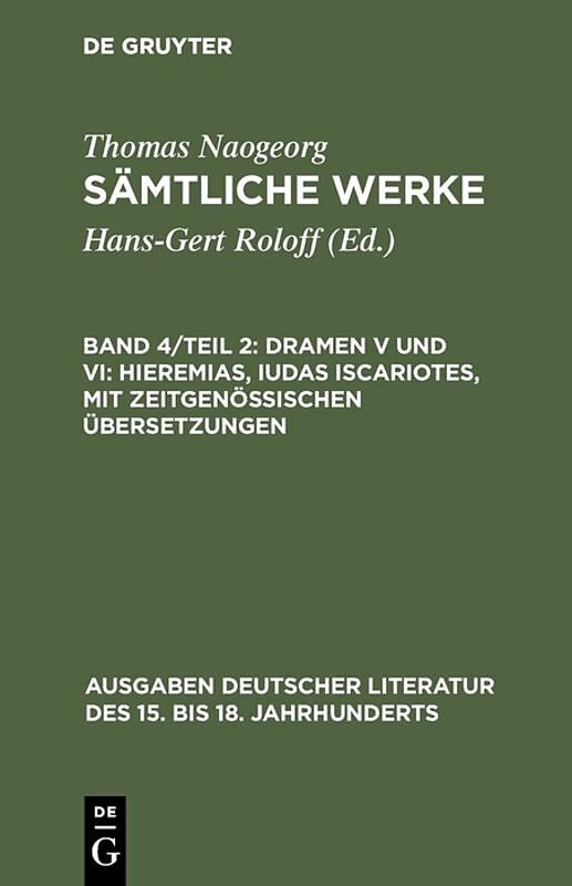Dieser Titel, "Dramen V und VI: Hieremias, Iudas Iscariotes, mit zeitgenössischen Übersetzungen", ist eine wissenschaftliche Publikation, erschienen bei De Gruyter Brill. Ausführliche Beschreibung, Inhaltsverzeichnis und weitere Angaben finden Sie auf der Verl...