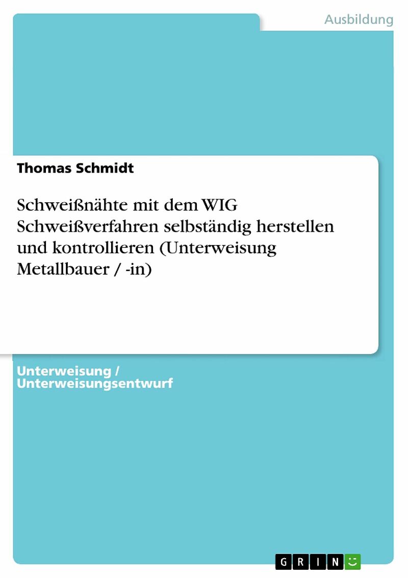 Unterweisung / Unterweisungsentwurf aus dem Jahr 2005 im Fachbereich AdA Handwerk / Produktion / Gewerbe - Mechanische Berufe, Metall und Kunststoff, Note: gut, , Sprache: Deutsch, Abstract: Schweißnähte mit dem WIG Schweißverfahren selbständig herstellen und...