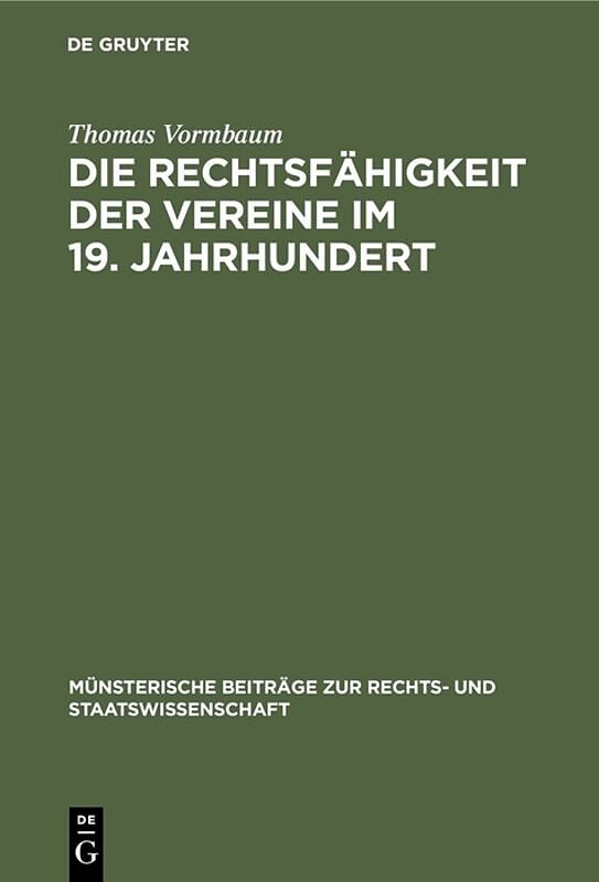 Keine ausführliche Beschreibung für "Die Rechtsfähigkeit der Vereine im 19. Jahrhundert" verfügbar. Zusammenfassung Frontmatter -- VORWORT -- INHALTSVERZEICHNIS -- ABKÜRZUNGSVERZEICHNIS -- EINLEITUNG -- ERSTES KAPITEL: ALLGEMEINE FRAGEN -- ZWEITES KAPITEL: DI...
