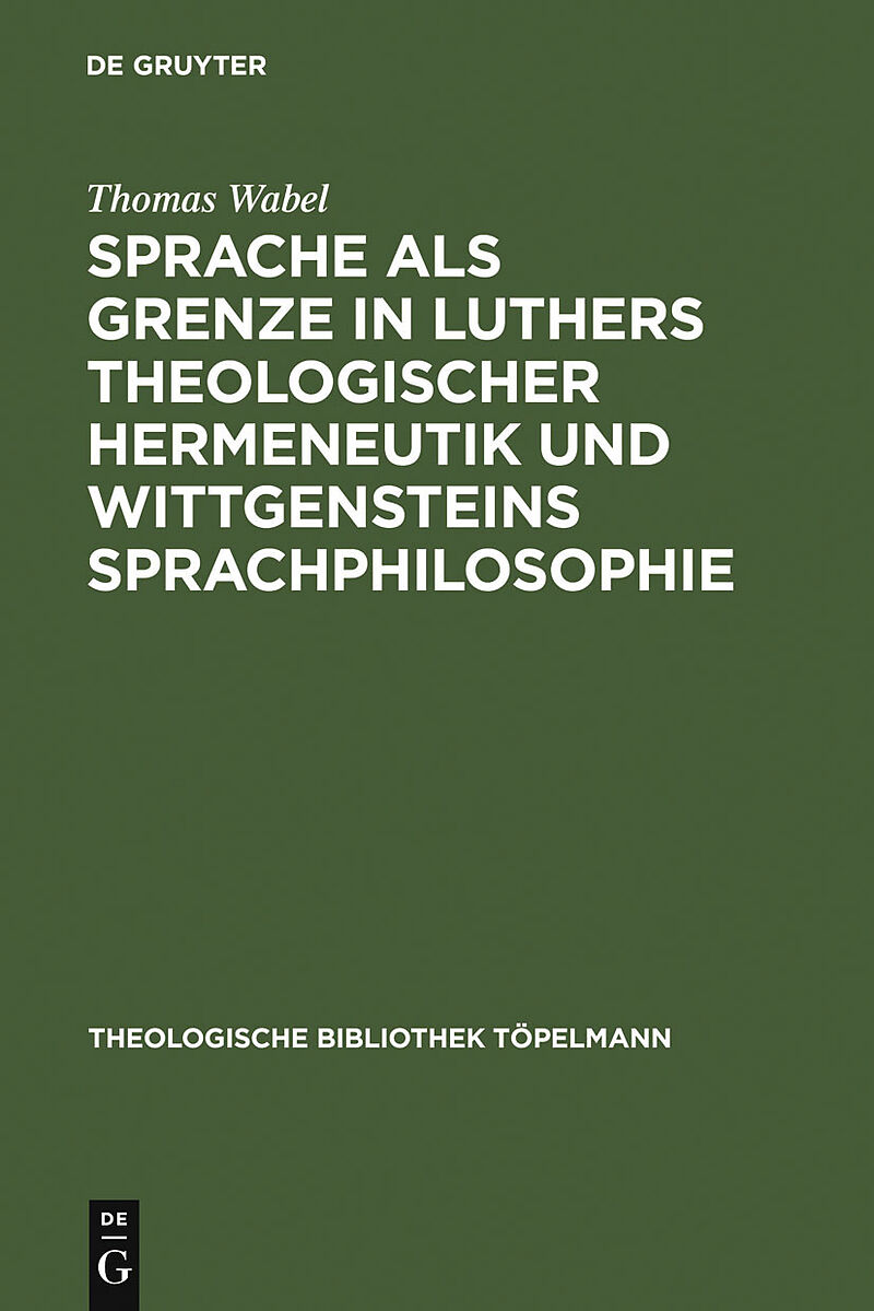 Dieser Titel, "Sprache als Grenze in Luthers theologischer Hermeneutik und Wittgensteins Sprachphilosophie", ist eine wissenschaftliche Publikation, erschienen bei De Gruyter Brill. Ausführliche Beschreibung, Inhaltsverzeichnis und weitere Angaben finden Sie a...
