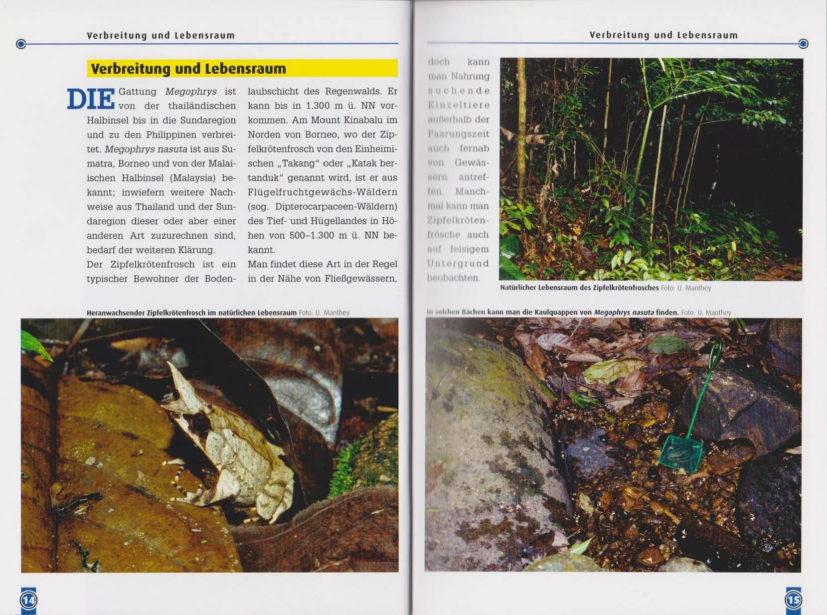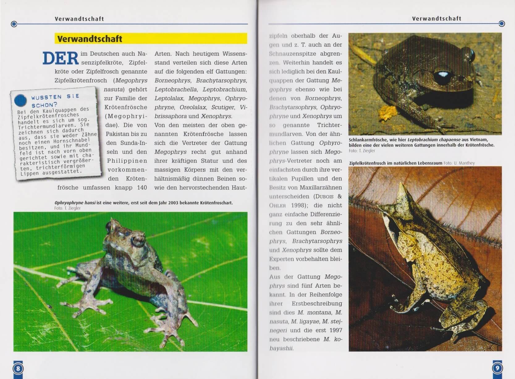 Der Zipfelkrötenfrosch (Pelobatrachus nasutus, Syn.: Megophrys nasuta) gehört schon alleine durch seine, für Froschlurche, imposante Größe zu den auffälligen Vertretern dieser Gattung. Männchen erreichen eine Länge von 70 bis 105 Millimeter, Weibchen werden mi...