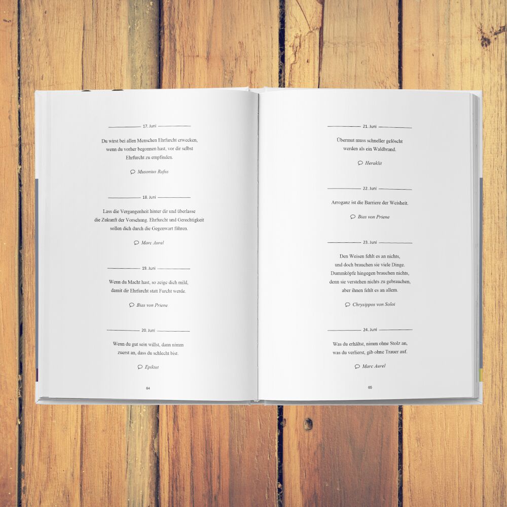 Stoische Lebensweisheiten für jeden Tag In diesem Zitate-Buch warten 365 Zitate von den wichtigsten Stoikern auf dich, mit deren Hilfe du dein Leben gelassener und erfolgreicher gestalten kannst. Die Philosophie der Stoa erlebt im 21. Jahrhundert ein beachtlic...