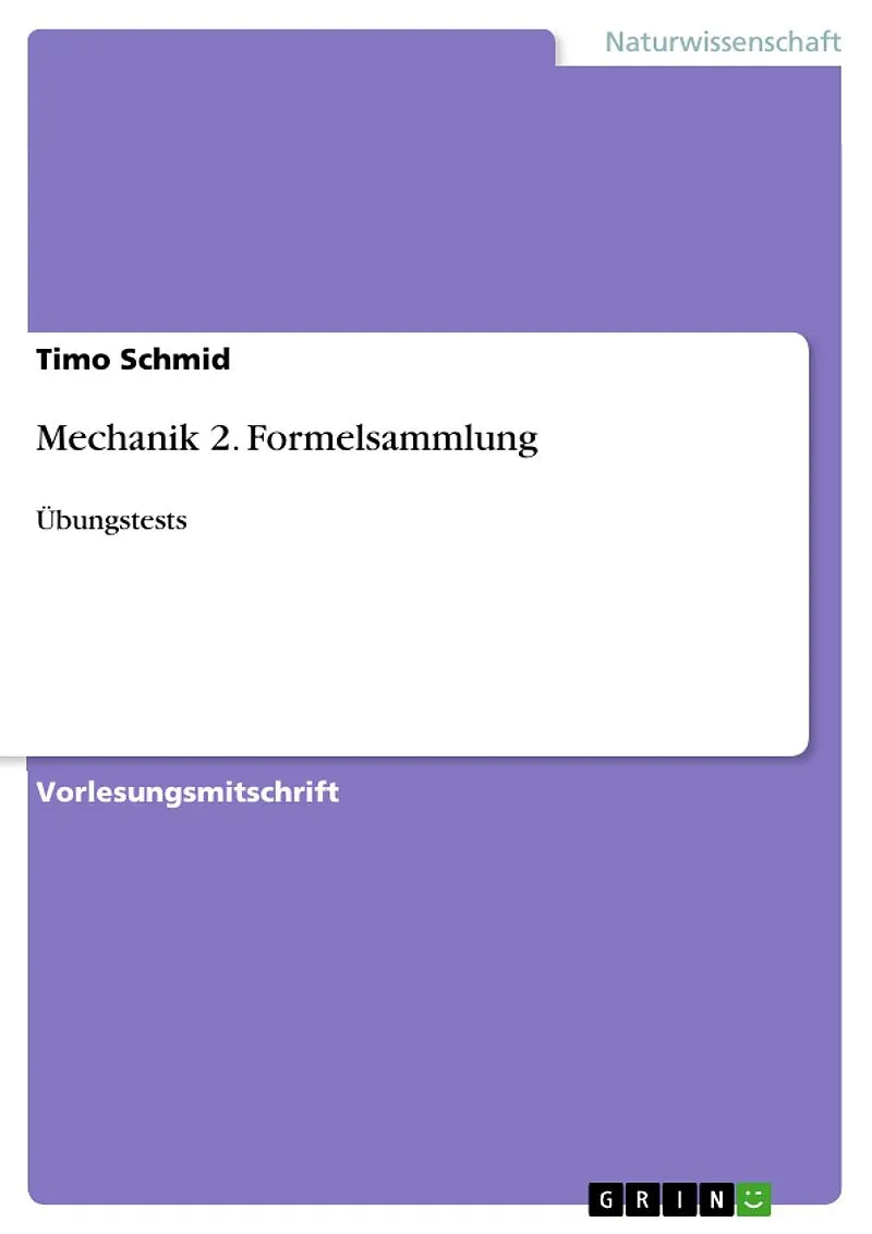 Vorlesungsmitschrift aus dem Jahr 2014 im Fachbereich Physik - Mechanik, Technische Universität Wien, Sprache: Deutsch, Abstract: Kompakte Sammlung der, für die Übungstests relevanten, Formeln der Mechanik 2. Diese Formelsammlung ist hauptsächlich für Studier...