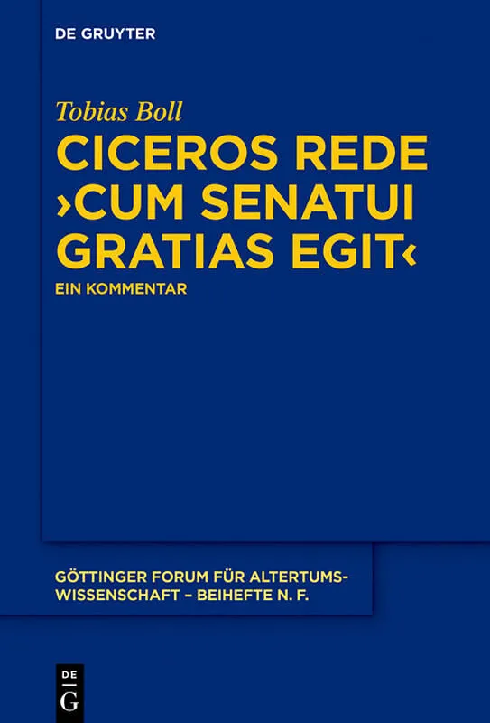 The day after he returned from exile, Cicero gave a speech of thanks to the senate. This is the first modern commentary of that oration, cum senatui gratias egit . Considering the matching oration Cicero gave to the people as well, this book is an important c...