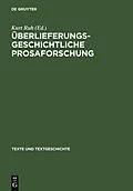 Dieser Titel, "Überlieferungsgeschichtliche Prosaforschung", ist eine wissenschaftliche Publikation, erschienen bei De Gruyter Brill. Ausführliche Beschreibung, Inhaltsverzeichnis und weitere Angaben finden Sie auf der Verlagswebsite: https://www.degruyterbril...