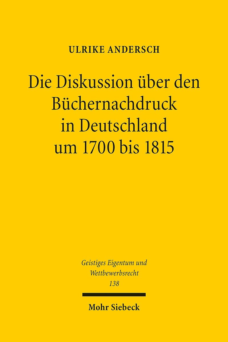 Ulrike Andersch provides an overall picture of copyright history in eighteenth century Germany by undertaking an extensive analysis of how book reprinting and the theory of intellectual property developed. Along with questions of legal history, historical aspe...