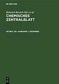 Inhalt -- Namenregister -- A. Allgemeine und physikalische Chemie -- B. Anorganische Chemie -- C. Mineralogische und geologische Chemie -- D. Organische Chemie -- E. Biologische Chemie. Physiologie. Medizin -- F. Pharmazie. Desinfektion -- G. Analyse. Laborato...