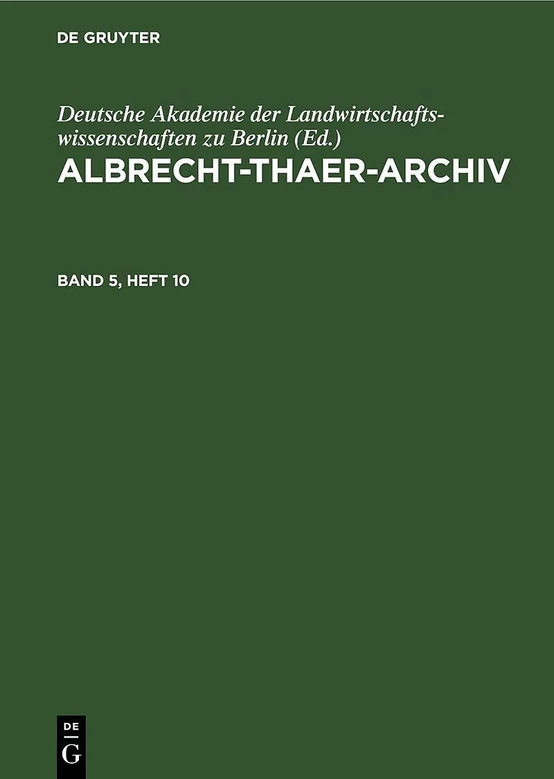 Dieser Titel, "Albrecht-Thaer-Archiv. Band 5, Heft 10", ist eine wissenschaftliche Publikation, erschienen bei De Gruyter Brill. Ausführliche Beschreibung, Inhaltsverzeichnis und weitere Angaben finden Sie auf der Verlagswebsite: https://www.degruyterbrill.com...