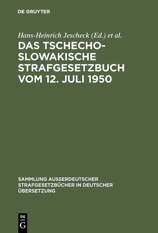 Frontmatter -- Inhalt -- Einleitung -- Abkürzungen -- Übersicht über das Strafgesetz -- Strafgesetz vom 12. Juli 1950, Nr. 86 Sb. -- Kundmachung des Justizministers -- Gesetz vom 19. Dezember 1956, Nr. 63 Sb. -- Gesetz vom 19. Dezember 1957, Nr. 68 Sb. -- Kund...