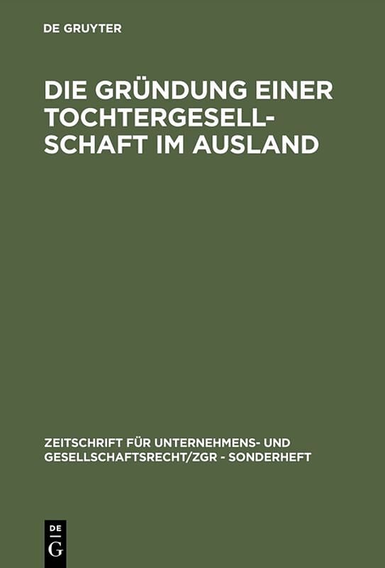 Frontmatter -- Vorwort des Herausgebers -- Inhaltsübersicht -- Länderübersicht -- Inhaltsverzeichnis -- Die Gründung einer Tochtergesellschaft in Argentinien -- Die Gründung einer Tochtergesellschaft in Australien -- Die Gründung einer Tochtergesellschaft in B...