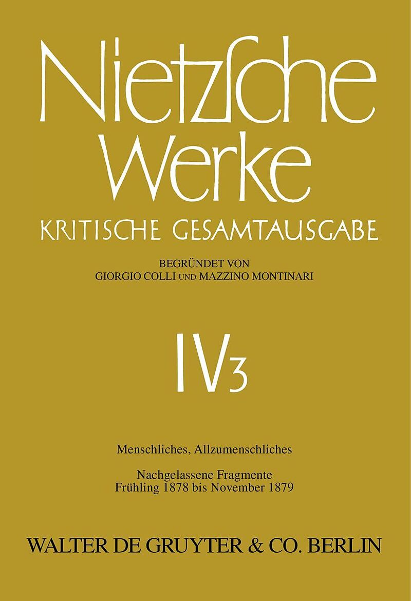 Dieser Titel, "Menschliches, Allzumenschliches, Band 2: Nachgelassene Fragmente, Frühling 1878 bis November 1879", ist eine wissenschaftliche Publikation, erschienen bei De Gruyter Brill. Ausführliche Beschreibung, Inhaltsverzeichnis und weitere Angaben finden...