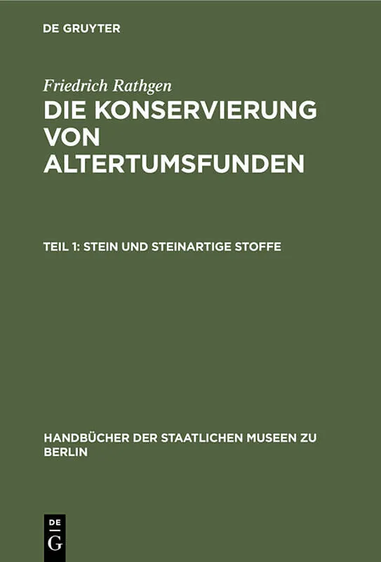 Frontmatter -- Aus dem Vorwort zur 1. Auflage -- Vorwort zur 2. Auflage -- Inhalt -- Literatur -- Einleitung -- Erster Abschnitt Die Veränderungen der Altertumsfunde aus Stein und steinartigen Stoffen -- Zweiter Abschnitt. Die Erhaltung der Altertumsfunde aus ...
