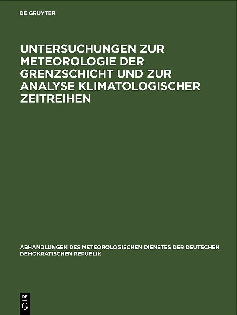 Dieser Titel, "Untersuchungen zur Meteorologie der Grenzschicht und zur Analyse klimatologischer Zeitreihen", ist eine wissenschaftliche Publikation, erschienen bei De Gruyter Brill. Ausführliche Beschreibung, Inhaltsverzeichnis und weitere Angaben finden Sie ...