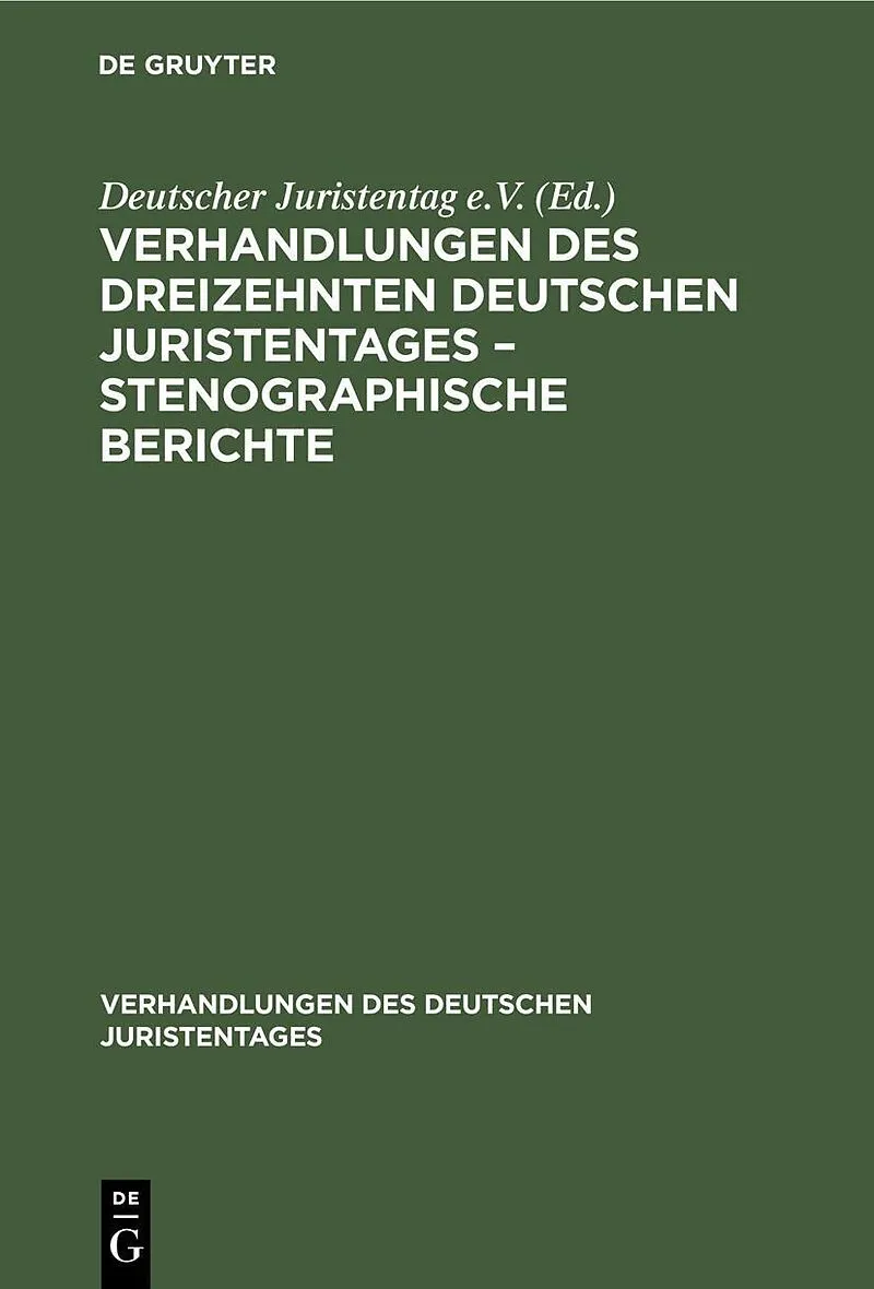 Frontmatter -- Inhaltsverzeichniß -- Verzeichniß der Mitglieder -- Statut des deutschen Juristentages -- Stenographische Berichte -- Erste Plenarsitzung des Dreizehnten Deutschen Juristentages -- Einleitung -- Erste Sitzung der ersten und zweiten Abtheilung am...