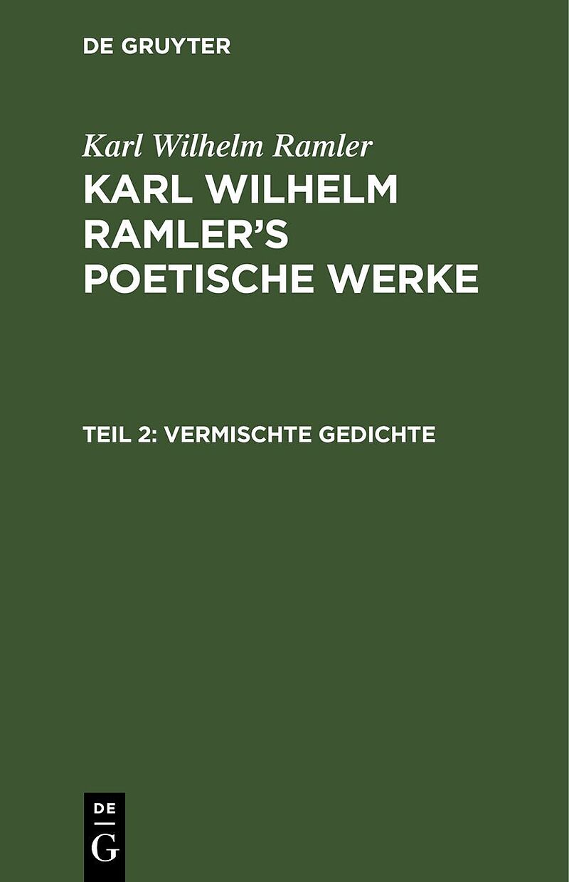 Frontmatter -- Inhalt -- I. Vermischte Gedichte -- II. Das Fest des Daphnis und der Daphne. (1769) -- III. Ino > eine Cantate -- IV. Pygmalion, eine Cantate -- V. Die Krönung, eine Cantate -- VI. Sulamith und Eusebia, eine Cantate -- VII. Dankopfer für den Lan...