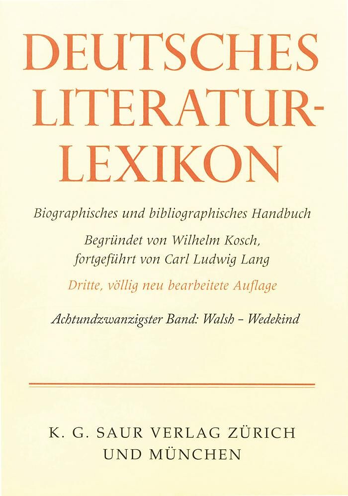 The Deutsches Literatur-Lexikon is one of the best known, most comprehensive and most reliable reference works on German literature. Spanning the ages, the work encompasses writers from all eras, ranging from the Middle Ages to the present day. Volume 28 cont...