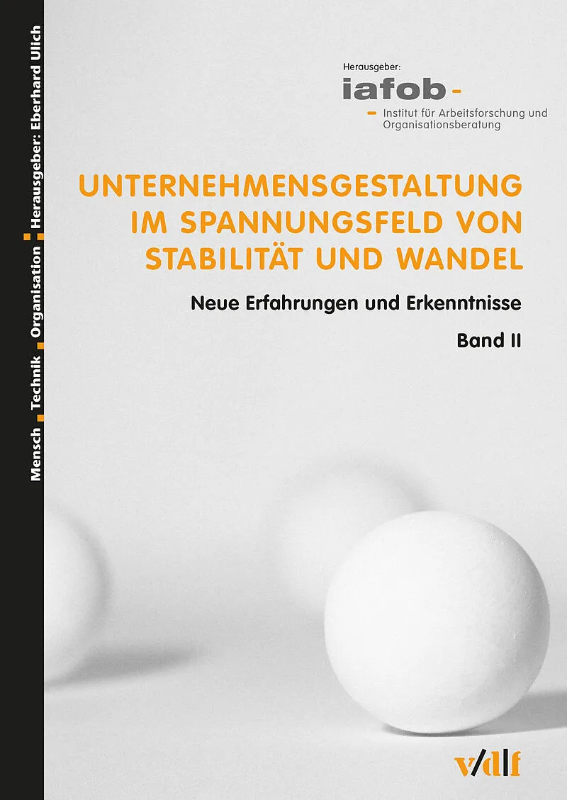 Das Institut für Arbeitsforschung und Organisationsberatung (iafob) ist aus der Eidgenössischen Technischen Hochschule (ETH) Zürich entstanden und verfolgt als privatwirtschaftliches Institut eine konsequente Verknüpfung von Arbeitsforschung und Organisationsb...Das Institut für Arbeitsforschung und Organisationsberatung (iafob) ist aus der Eidgenössischen Technischen Hochschule (ETH) Zürich entstanden und verfolgt als privatwirtschaftliches Institut eine konsequente Verknüpfung von Arbeitsforschung und Organisationsberatung. Dazu erforscht das iafob innovative Ansätze der Unternehmensgestaltung und begleitet Organisationen bei der Konzeption und Umsetzung betrieblicher Veränderungs- und Innovationsprozesse. Das vorliegende Buch beinhaltet eine weitere Bilanz der Arbeit des iafob in Forschung und Beratung. Der thematische Bogen erstreckt sich über relevante Fragen der Strategieklärung und -definition, der Arbeits- und Organisationsgestaltung, der Organisations- und Führungsentwicklung, des Human Resource Management, der Arbeitssicherheit und des Gesundheitsmanagements bis hin zu Fragen der Konzeption und Gestaltung von Veränderungsprozessen in Unternehmen. Die betrieblichen Fallbeispiele stammen aus Organisationen verschiedener Größen und Branchen.