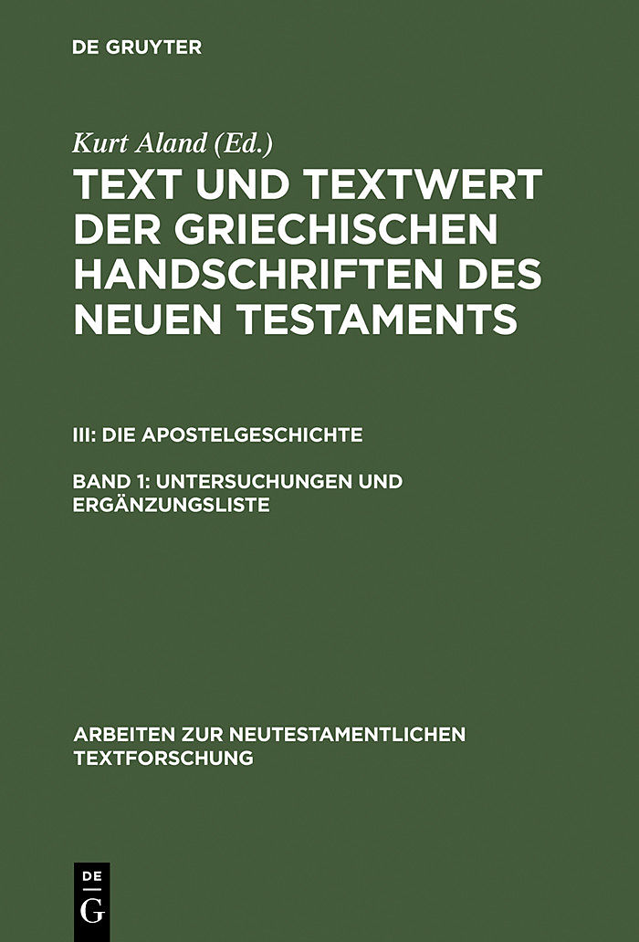 Dieser Titel, "Untersuchungen und Ergänzungsliste", ist eine wissenschaftliche Publikation, erschienen bei De Gruyter Brill. Ausführliche Beschreibung, Inhaltsverzeichnis und weitere Angaben finden Sie auf der Verlagswebsite: https://www.degruyterbrill.com/isb...