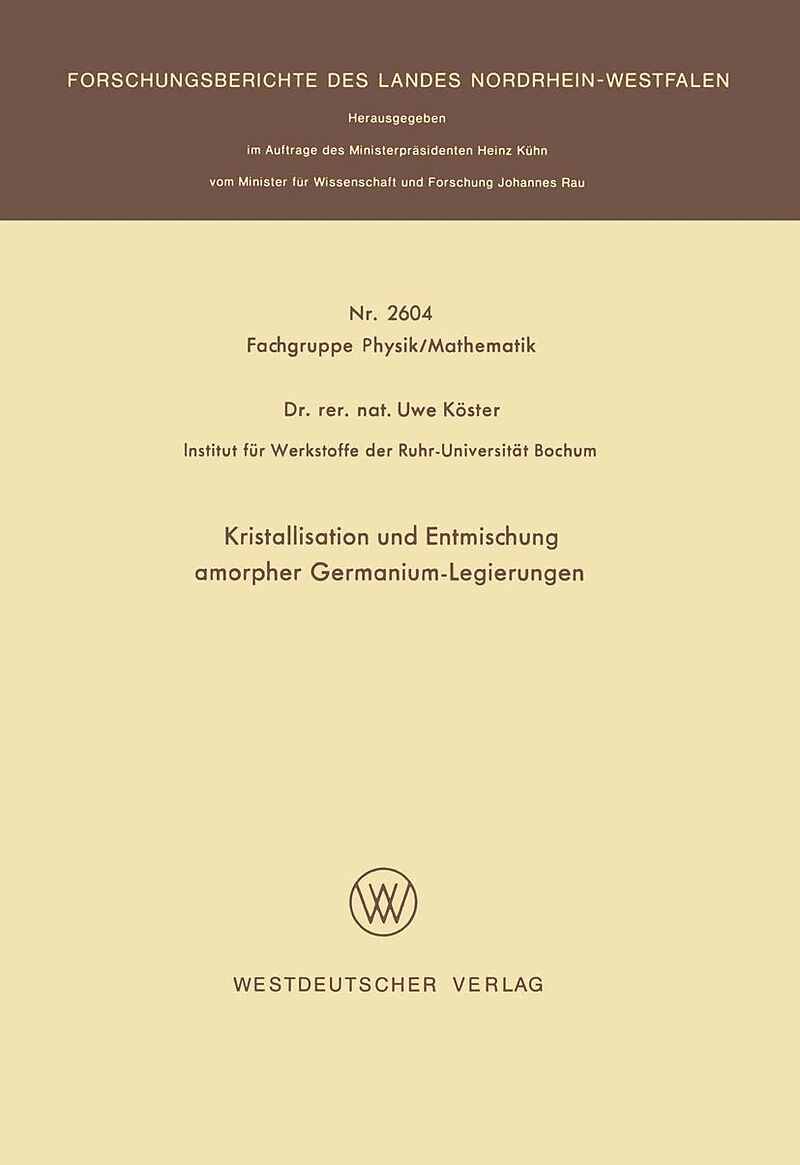 Inhalt I. Einleitung.- II. Experimentelle Methoden.- (1) Herstellung amorpher Germanium-Legierungen durch Aufdampfen.- (2) Untersuchung des Kristallisations- und Entmischungsverhaltens.- III. Kristallisation des amorphen Germaniums.- (1) Struktur des amorphen ...