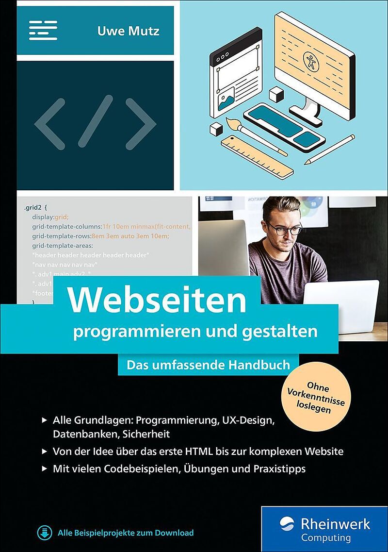 Gute Webseiten zu entwickeln ist eine vielseitige Kunst: Ein Gespür für die Gestaltung ist ebenso gefragt wie solide Kenntnisse der Web-Sprachen HTML und JavaScript; und für die Serverseite ist PHP die beliebteste Wahl. Der erfahrene Webexperte und Dozent Uwe ...Gute Webseiten zu entwickeln ist eine vielseitige Kunst: Ein Gespür für die Gestaltung ist ebenso gefragt wie solide Kenntnisse der Web-Sprachen HTML und JavaScript; und für die Serverseite ist PHP die beliebteste Wahl. Der erfahrene Webexperte und Dozent Uwe Mutz beweist hier, dass sich lehren und lernen lässt, was Sie als Webseiten-Profi brauchen. Ob es um Markup und Protokolle geht, die richtige Story für die Zielgruppe, den wirkungsvollen Einsatz von Bildelementen oder die performante Datenbankanbindung dieses Handbuch ist der perfekte Begleiter für eine ganzheitliche Ausbildung und für den Beruf. Von den Grundlagen bis zu Themen wie Performanz, Sicherheit und gutem Webdesign ideal zum Lernen, Auffrischen und Nachschlagen. Aus dem Inhalt: Eine Arbeitsumgebung einrichten Grundlagen von HTML bis PHP Gestaltungs-Prinzipien Bilder skalieren und zurechtschneiden Farben und Designs wirkungsvoll einsetzen Ein Datenbankschema entwerfen Verschlüsselungsstandards Mail-Funktionen anbieten SQL-Injections und anderen Angriffen vorbeugen Beispielprojekte: Bibliotheksverwaltung, Onlineshop, Mitglieder-Webseite, Dienstpläne u. v. m Barrierefreiheit im Web