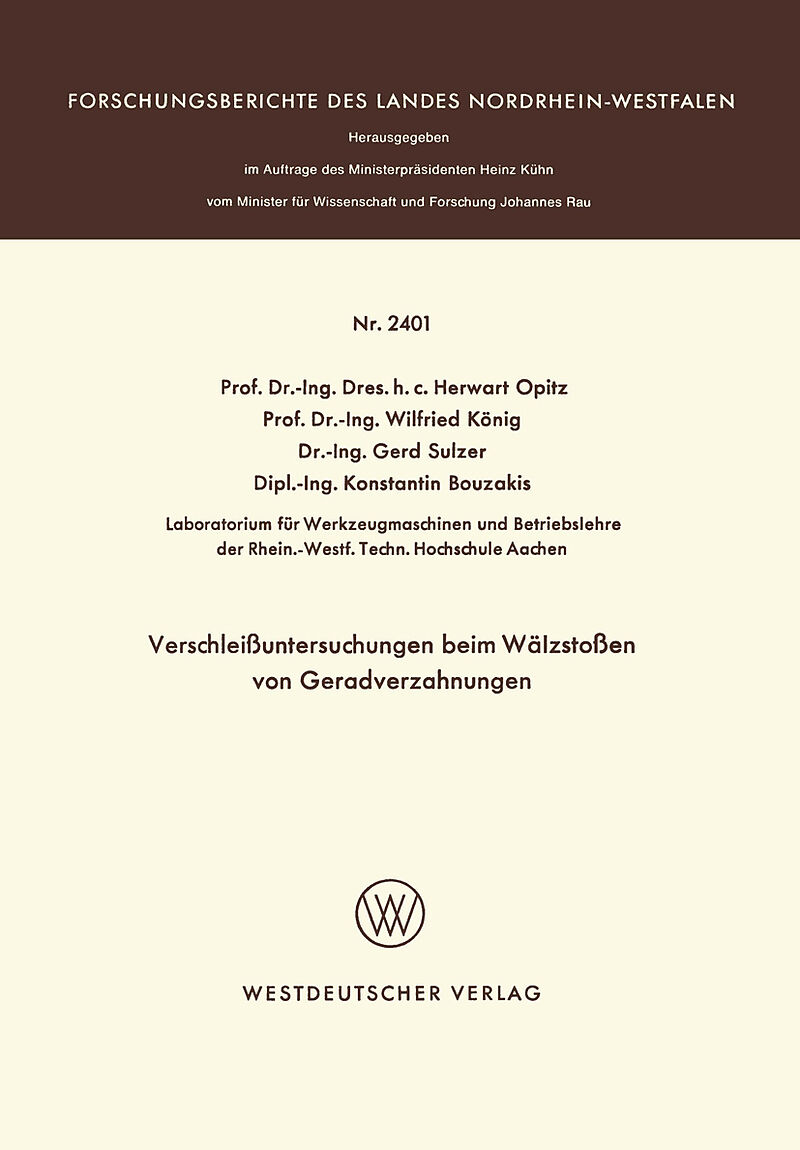 Inhalt 1. Einleitung.- 2. Analyse der Zerspankinematik Beim Wälzstoßen.- 2.1 Bestimmung der Spanungsquerschnitte.- 2.2 Kollisionsberechnung für den Rückhub.- 3. Verschleißuntersuchungen.- 3.1 Prinzipielles Verschleißverhalten.- 3.2 Standzeituntersuchungen bei ...