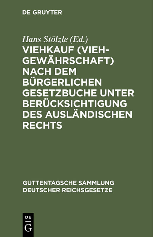 Dieser Titel, "Viehkauf (Viehgewährschaft) nach dem Bürgerlichen Gesetzbuche unter Berücksichtigung des ausländischen Rechts", ist eine wissenschaftliche Publikation, erschienen bei De Gruyter Brill. Ausführliche Beschreibung, Inhaltsverzeichnis und weitere An...