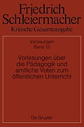 This edition is the 12th volume in the lecture series of the Complete Critical Edition of Schleiermacher's works. It presents the pronouncements made by Schleiermacher on pedagogy between 1810 and 1826, including writings emerging from the Prussian school ref...