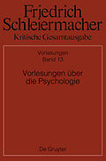 This book is published as the 13th volume of the lecture section within the critical edition of the complete works of Schleiermacher. For each series of lectures on psychology from the summer semesters 1818, 1821, 1830 and the winter semester 1833/34, it cont...