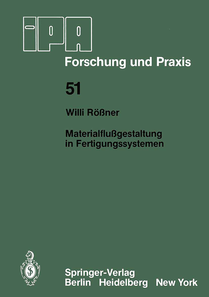 Inhalt 0.1 Schrifttum.- 0.2 Verwendete Größen, Einheiten und Abkürzungen.- 0.3 Begriffe und Definitionen.- 1 Einleitung.- 1.1 Stand der Erkenntnisse.- 1.2 Zielsetzung und Aufgabenstellung.- 1.3 Vorgehensweise.- 2 Materialfluß als Teilsystem von Fertigungssyste...