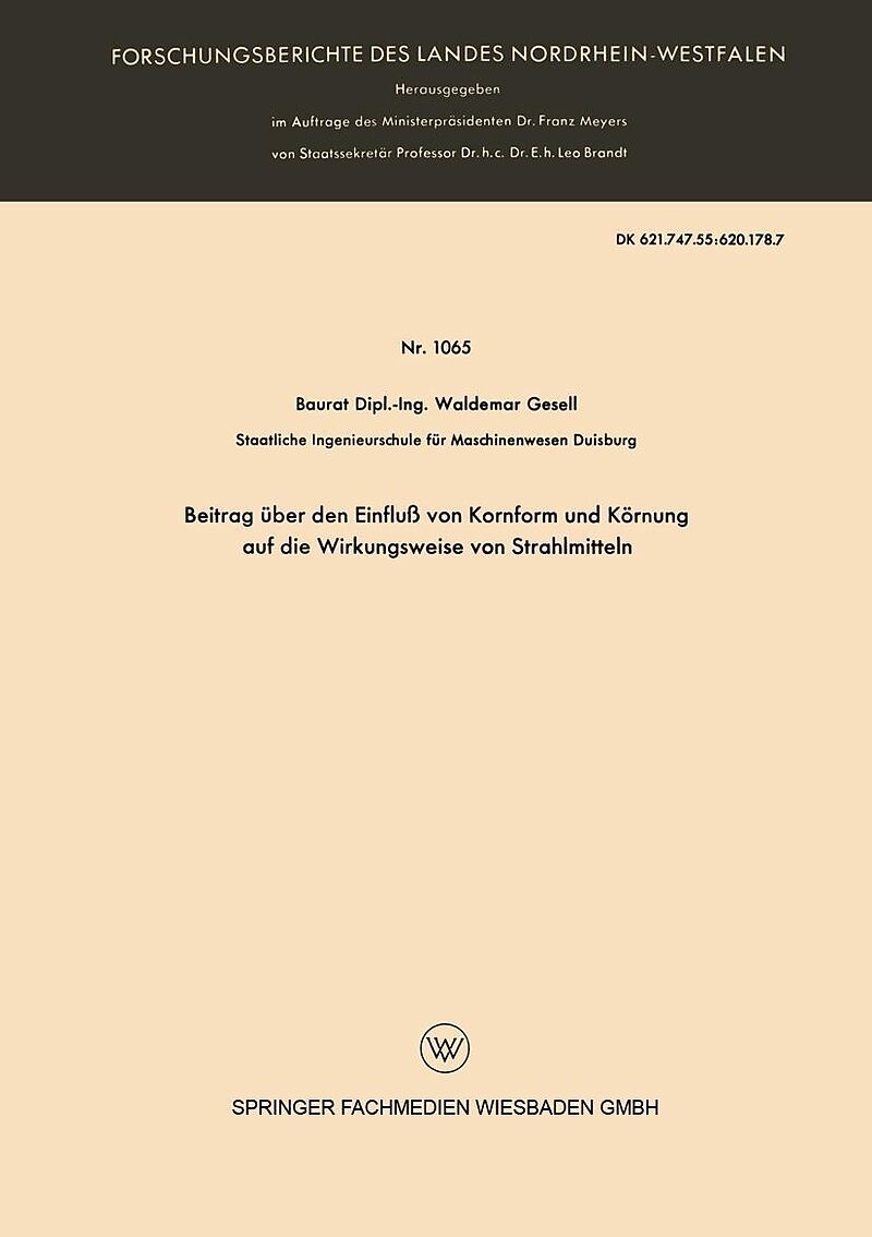 Inhalt Gliederung.- 1. Die Beurteilung der Strahlmittel.- 2. Zur Ermittlung der wirtschaftlichsten Strahlmittelkörnung.- 3. Abtragwirkung.- 4. Zur Ausbildung der gestrahlten Oberfläche durch Körnung und Kornform.- 5. Der Einfluß der Kornform auf die Kennwerte ...