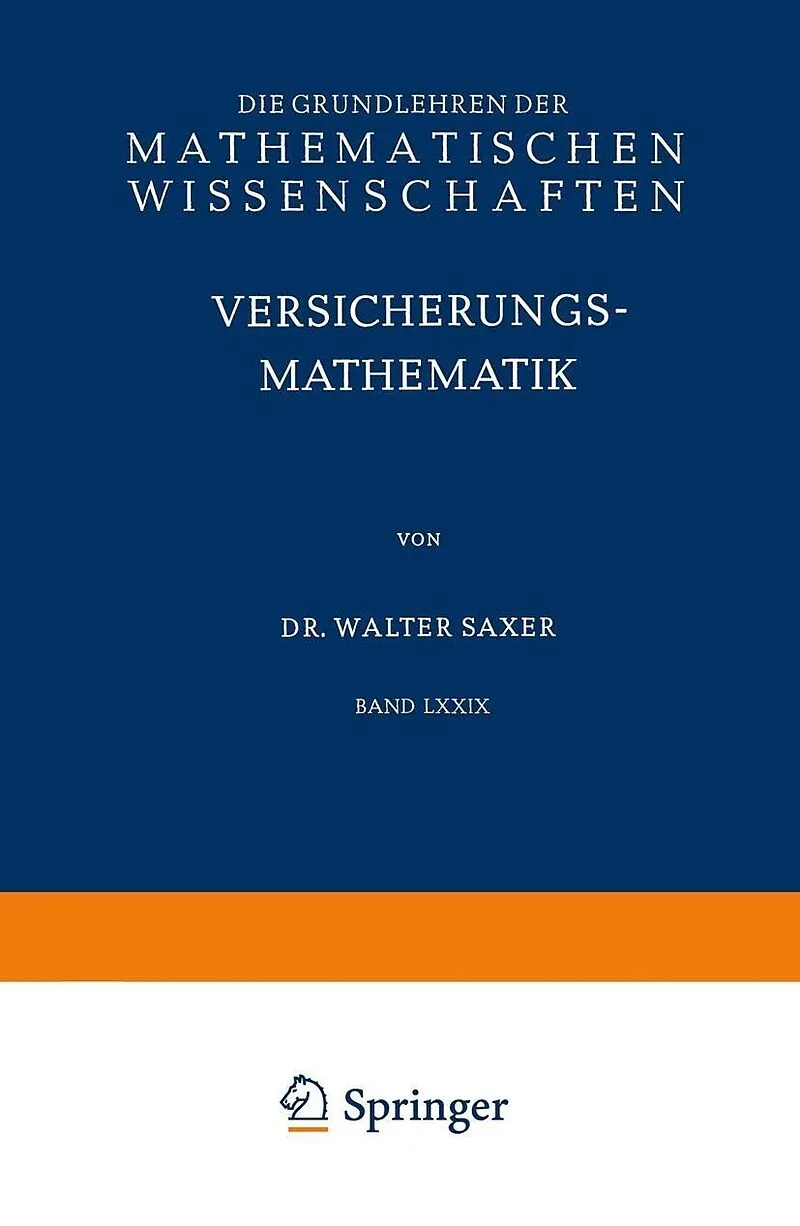 I. Zinstheorie.- Allgemeine Betrachtungen.- 1.1. Einmalige Zahlungen.- 1.2. Periodische Zahlungen.- 1.3. Sparversicherung.- II. Theorie der Personengesamtheiten.- und Problemstellung.- 2.1. Absterbeordnung.- 2.2. Berechnung der Absterbeordnung.- 2.3. Die wichtigsten Typen von Sterblichkeitstafeln und ihre Eigenschaften.- 2.4. Die Ausscheideordnungen.- 2.5. Aktivitätsordnung.- III. Die Leibrente und die Kapitalversicherungen auf ein Leben.- und Problemstellung.- 3.1. Barwerte von Erlebensfallversicherungen, Leibrenten und Terminversicherungen.- 3.2. Die unterjährig bezahlbare Leibrente.- 3.3. Kapitalversicherung auf den Todesfall und gemischte Versicherung.- 3.4. Veränderliche Renten und Versicherungssummen.- 3.5. Nettoprämien.- 3.6. Verwaltungskosten, ausreichende Prämie und Bruttoprämie.- 3.7. Prämienrückgewähr.- 3.8. Anwendung von Selektionstafeln.- IV. Versicherungen auf mehrere Leben.- und Problemstellung.- 4.1. Absterbeordnung von Paaren.- 4.2. Wichtigste Versicherungswerte für zwei verbundene Leben.- 4.3. Anwendung der Makehamschen Absterbeordnung bei der Berechnung der Verbindungsrente verbundener Leben.- V. Pensionsversicherung.- und Problemstellung.- 5.1. Aktivitätsrente.- 5.2. Invaliditätsversicherungsleistungen.- 5.3. Kombinierte Alters- und Invalidenrentenversicherung.- 5.4. Variation der Invaliditätswahrscheinlichkeiten bei der Berechnung des Barwertes anwartschaftlicher Invalidenrenten.- 5.5. Allgemeine Betrachtungen über die Witwenrentenversicherung.- 5.6. Der Barwert laufender Witwenrenten und Witwenabfindungen.- 5.7. Anwartschaftliche Witwenrente, berechnet gemäß der Individualmethode.- 5.8. Anwartschaftliche Witwenrente, berechnet nach der Kollektivmethode.- 5.9. Waisenrentenversicherung.- 5.10. Invalidenkinderrenten.- 5.11. Einlage,Netto- und Bruttoprämie bei Pensionsversicherungen, Prämienbefreiung im Invaliditätsfall.- VI. Prämienreserve (Deckungskapital).- und Problemstellung.- 6.1. Nettoprämienreserve, Spar- und Risikoprämie.- 6.2. Nettoprämienreserve für einige Versicherungsarten.- 6.3. Bilanzreserve, Bilanzdeckungskapital, Prämien- und Rentenübertrag.- 6.4. Berücksichtigung von Verwaltungskosten bei der Berechnung der Prämienreserve, Verwaltungskostenreserve und gezillmerte Reserve.- 6.5. Gruppenweise Berechnung der Prämienreserve.- 6.6. Berechnung der Prämienreserve mittels Interpolation.- 6.7. Kollektive Reserveberechnung.- 6.8. Umwandlungs- und Rückkaufswerte.- VII. Über allgemeine Variationsprobleme in der Versicherungsmathematik.- und Problemstellung.- 7.1. Allgemeine Variationsformeln.- 7.2. Das Invarianzproblem.- 7.3. Die Reservenvariation.- 7.4. Das Zinsfußproblem für einfache Versicherungen.- 7.5. Das Zinsfußproblem für Pensionsversicherungen.- 7.6. Einige versicherungsmathematische Vorzeichensätze.- VIII. Über die Konstruktion von Universaltafeln und ihre Anwendungen.- und Problemstellung.- 8.1. Kontinuierliche Darstellung der einfachsten Versicherungswerte.- 8.2. Über einfache Transformationen von Versicherungswerten.- 8.3. Die Makehamschen Absterbeordnungen als Gruppe.- IX. Versicherungstechnische Bilanzen, ihre Analyse und die Gewinnverteilung.- und Problemstellung.- 9.1. Versicherungstechnische Bilanzen.- 9.2. Analyse der Bilanzen und der Gewinn- und Verlustrechnung.- 9.3. Berechnung der Risikogewinne und Risikoverluste.- 9.4. Erfolgsberechnung von Versicherungsunternehmungen.- 9.5. Kontributionsformel.- 9.6. Dividendenpläne.- 9.7. Dividendenreserve.- X. Erneuerungstheorie.- und Problemstellung.- 10.1. Offene natürliche Gesamtheiten.- 10.2. Offeneeinfache Gesamtheiten.- 10.3. Offene allgemeine Gesamtheiten.- 10.4. Grenzwerte der Erneuerungszahlen.- 10.5. Konvergenzbetrachtungen.- XI. Über die Finanzierungssysteme für Sozialversicherungen.- und Problemstellung.- 11.1. Das kollektive Äquivalenzprinzip.- 11.2. Umlageverfahren.- 11.3. Eigenschaften des Umlageverfahrens.- 11.4. Kollektives Deckungskapitalverfahren.- 11.5. Prämiendurchschnittsverfahren für eine Generation.- 11.6. Allgemeines Prämiendurchschnittsverfahren. Bilanz einer offenen Versicherungseinrichtung.- Über den stochastischen Aufbau der Versicherungsmathematik. Einleitung und Problemstellung.- A.1. Über eine verallgemeinerte Absterbeordnung.- A.2. Stochastische Definitionen und Zusammenhänge mit der Todesfallversicherung.- A.3. Stochastische Begründung des Äquivalenzprinzipes.- Tabellen.- Tabelle 1a. Rohe einjährige Sterbenswahrscheinlichkeiten der Schweizer Bevölkerung, Männer 1939/44.- Tabelle 1b. Rohe einjährige Sterbenswahrscheinlichkeiten der Schweizer Bevölkerung, Frauen 1939/44.- Tabelle 2a. Ausgeglichene, einjährige Sterbenswahrscheinlichkeiten der Schweizer Bevölkerung, Männer 1939/44.- Tabelle 2b. Ausgeglichene, einjährige Sterbenswahrscheinlichkeiten der Schweizer Bevölkerung, Frauen 1939/44.- Tabelle 3. Sterbetafel Deutsches Reich, Männer 1924/26. Sterbenswahrscheinlichkeiten und Kommutationszahlen zum Zinsfuß von 3½%.- Tabelle 4. Verschiedene Invalidierungswahrscheinlichkeiten.- Tabelle 5. Sterbenswahrscheinlichkeiten für Männer und Frauen gemäß den technischen Grundlagen für die Eidg. Versicherungskasse, Bern 1950.- Tabelle 6a. Sterbenswahrscheinlichkeit für invalide Männer gemäß den technischen Grundlagen für Pensionsversicherungen, Städt. Versicherungskasse Zürich 1950.- Tabelle 6b.Sterbenswahrscheinlichkeit für invalide Frauen gemäß den technischen Grundlagen für Pensionsversicherungen, Städt. Versicherungskasse Zürich 1950.- Namen- und Sachverzeichnis.