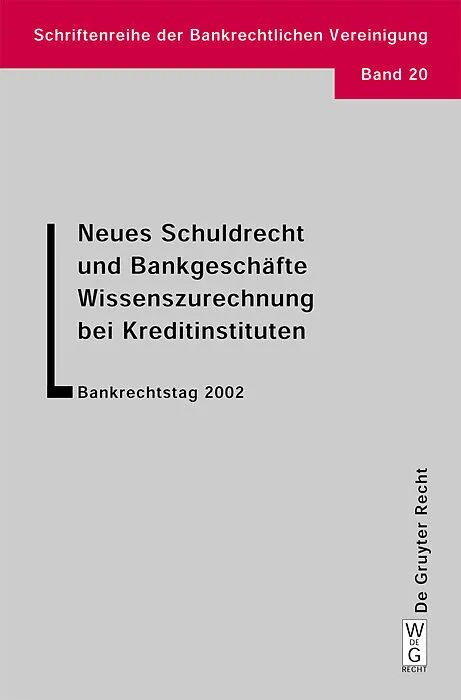 Zwei besonders aktuellen Themen von hoher kreditwirtschaftlicher Tragweite hat die Bankrechtliche Vereinigung - Wissenschaftliche Gesellschaft für Bankrecht e.V. ihren Bankrechtstag 2002 in Leipzig gewidmet: Neues Schuldrecht und Bankgeschäfte sowie Wissenszu...