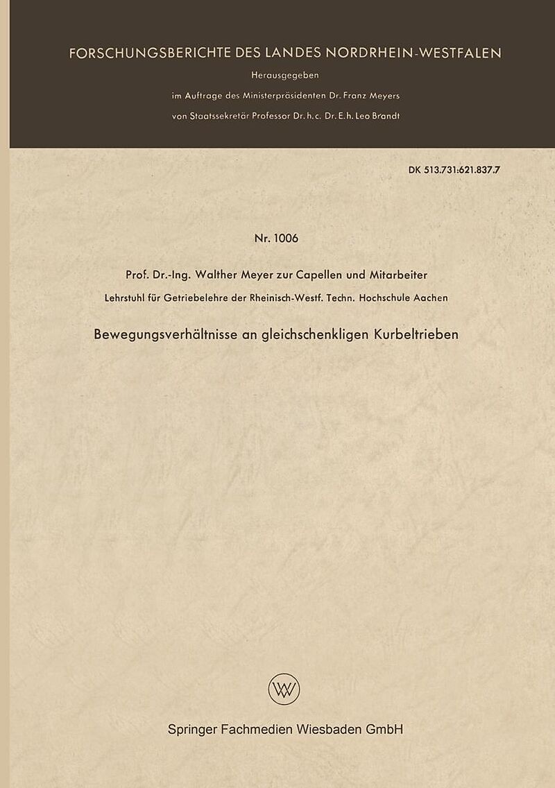 Gliederung.- 1. Die Kurbelschwinge.- 2. Die Doppelkurbel.- 3. Die Koppelkurven.