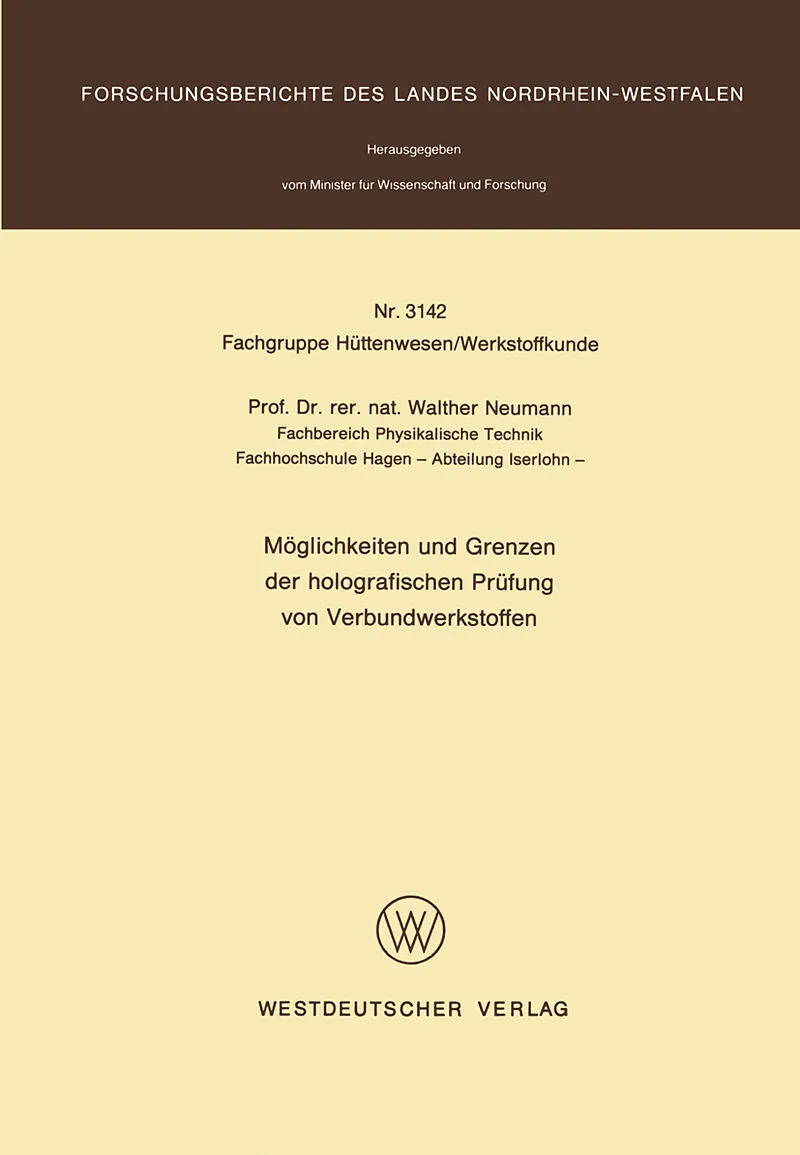 Inhalt 1. Einleitung.- 2. Apparatur und Prüfverfahren.- 3. Allgemeine Angaben über Verbundwerkstoffe.- 4. Die holografische Ermittlung von Ablösungen in Sandwich-Verbundplatten mit Wabenkern.- 5. Die holografische Ermittlung von Fehlverleimungen in Verbundelem...