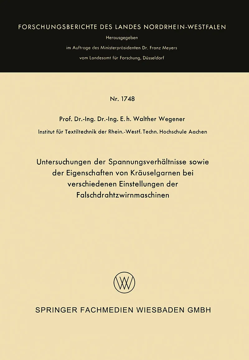 Inhalt 1. Einleitung.- 2. Die Falschdrahtzwirnmaschine.- 3. Die verschiedenen Faktoren, die die Qualität der Kräuselgarne beeinflussen.- 4. Die an der Falschdrahtzwirnmaschine einstellbaren Größen.- 5. Das Versuchsmaterial und die Maschineneinstellungen bei de...
