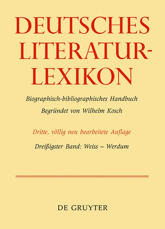 The Dictionary of German Literature is one of the best-known and most comprehensive and reliable works of reference on German literature. It spans a period from the Early Middle Ages to most recent times. Vol. 30 includes articles on Peter Weiss, Christian F....