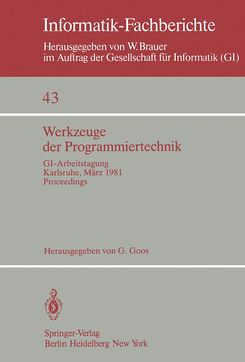 Inhalt Software-Produktionsumgebungen: Entwicklungsstand und Trends.- Developing algebraic specifications of threaded data structure implementations.- Ein Weg zur Spezifikation und Durchführung von Transformationen an Programmen in höheren Programmiersprachen....