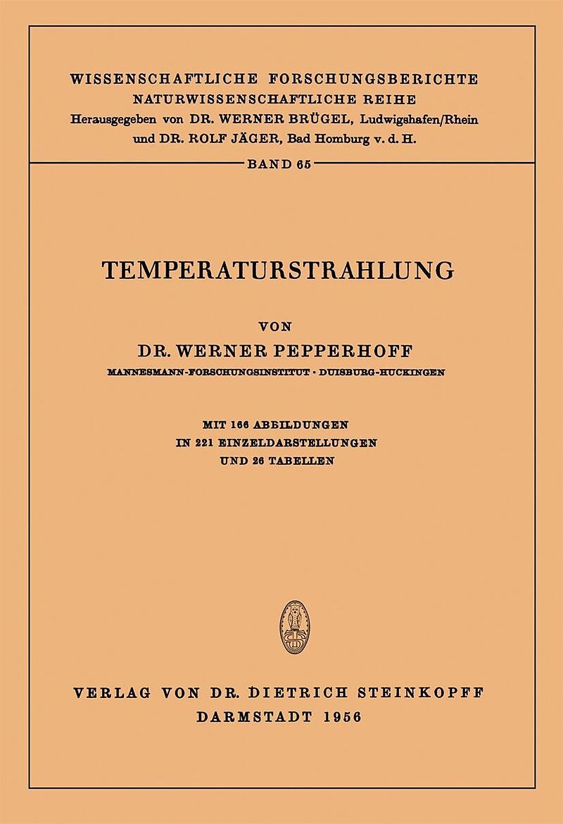 Inhalt I. Teil: Gesetze der Temperaturstrahlung.- 1. Das Kirchhoffsche Strahlungsgesetz.- 2. Die Verwirklichung des schwarzen Körpers.- 3. Die Gesetze der Hohlraumstrahlung.- II. Teil: Die Strahlungseigenschaften der Materie.- 1. Wechselwirkung der Strahlung m...