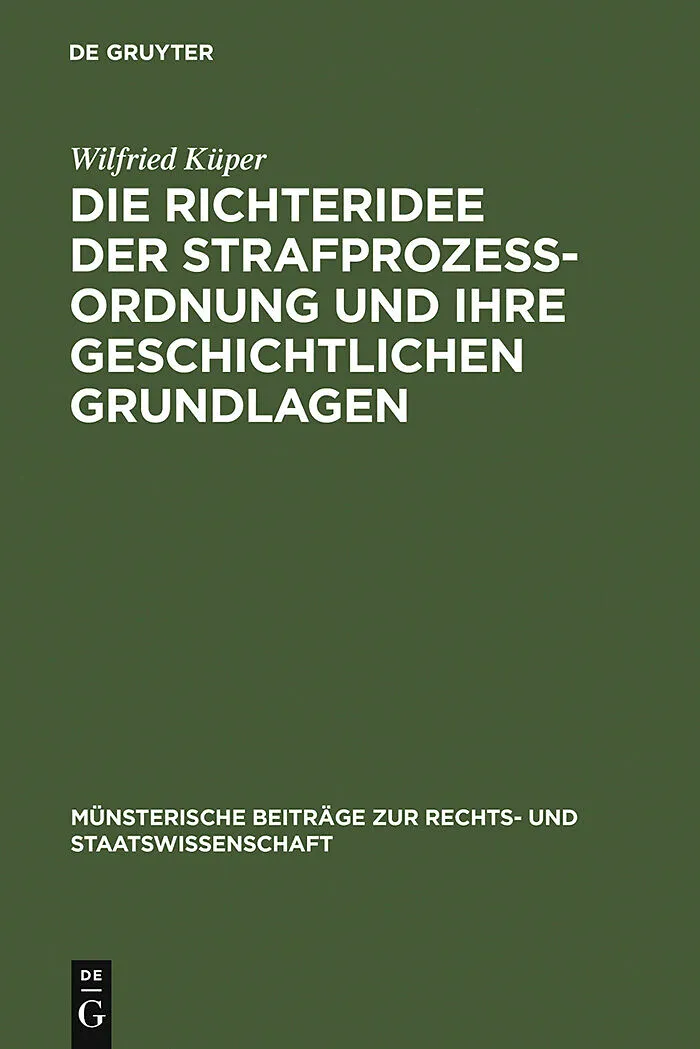 i-vi -- VORWORT -- ABKÜRZUNGEN -- INHALTSÜBERSICHT -- ?. EINLEITUNG -- ?. DIE RICHTERIDEE DER KRIMINALPOLITISCHEN AUFKLÄRUNG -- C. DIE WANDLUNG DER STELLUNG DES STRAFRICHTERS UNTER DEM EINFLUSS DER HISTORISCHEN RECHTSSCHULE -- D. DIE RICHTERVORSTELLUNG DES REC...