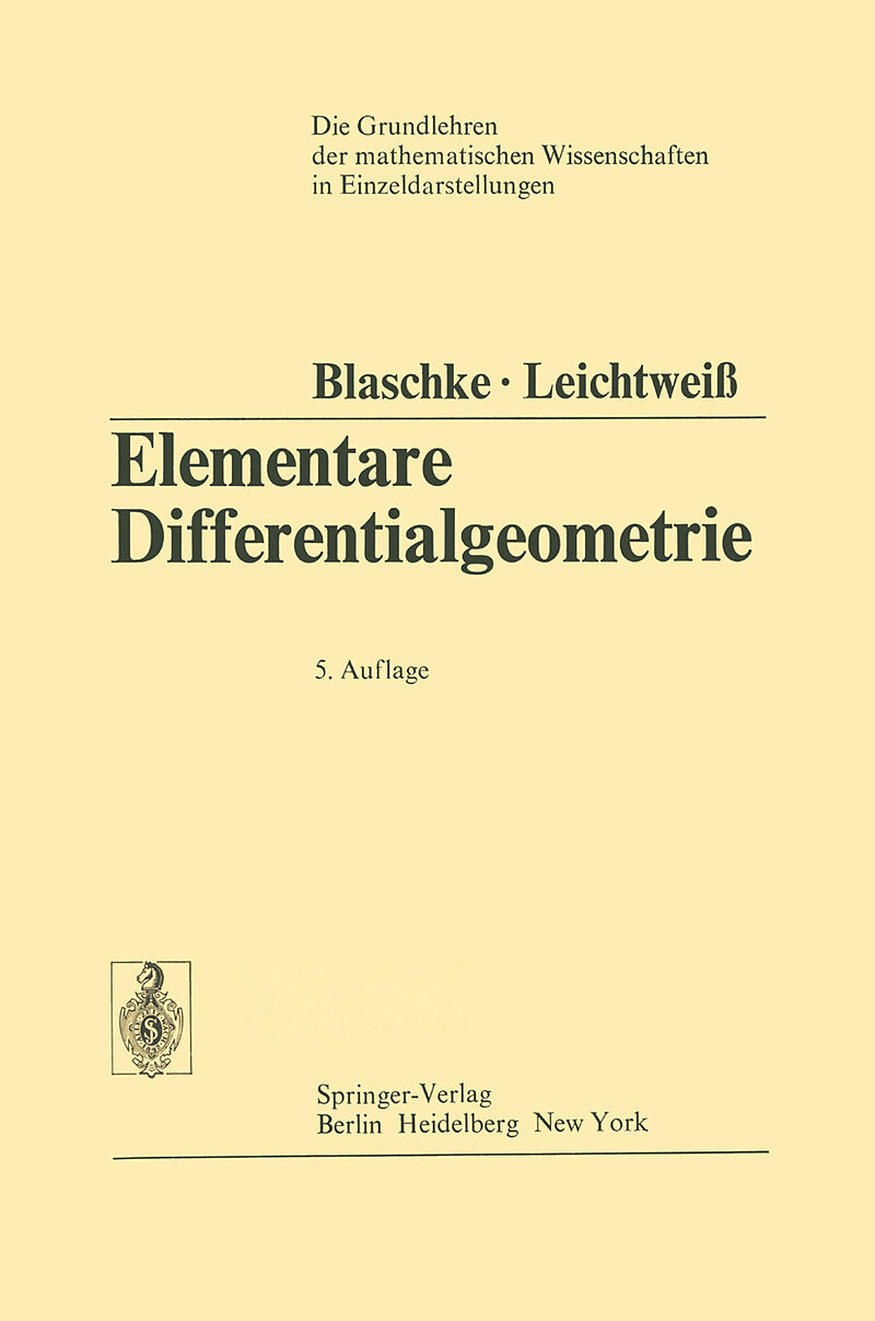 Inhalt Kurventheorie.- 2. Kapitel Extreme bei Kurven.- 3. Kapitel Streifen.- 4. Kapitel Anfangsgründe der Flächentheorie.- 5. Kapitel Cartansche Differentialformen auf einer Fläche.- 6. Kapitel Innere Geometrie einer Fläche.- 7. Kapitel Fragen der Flächentheor...