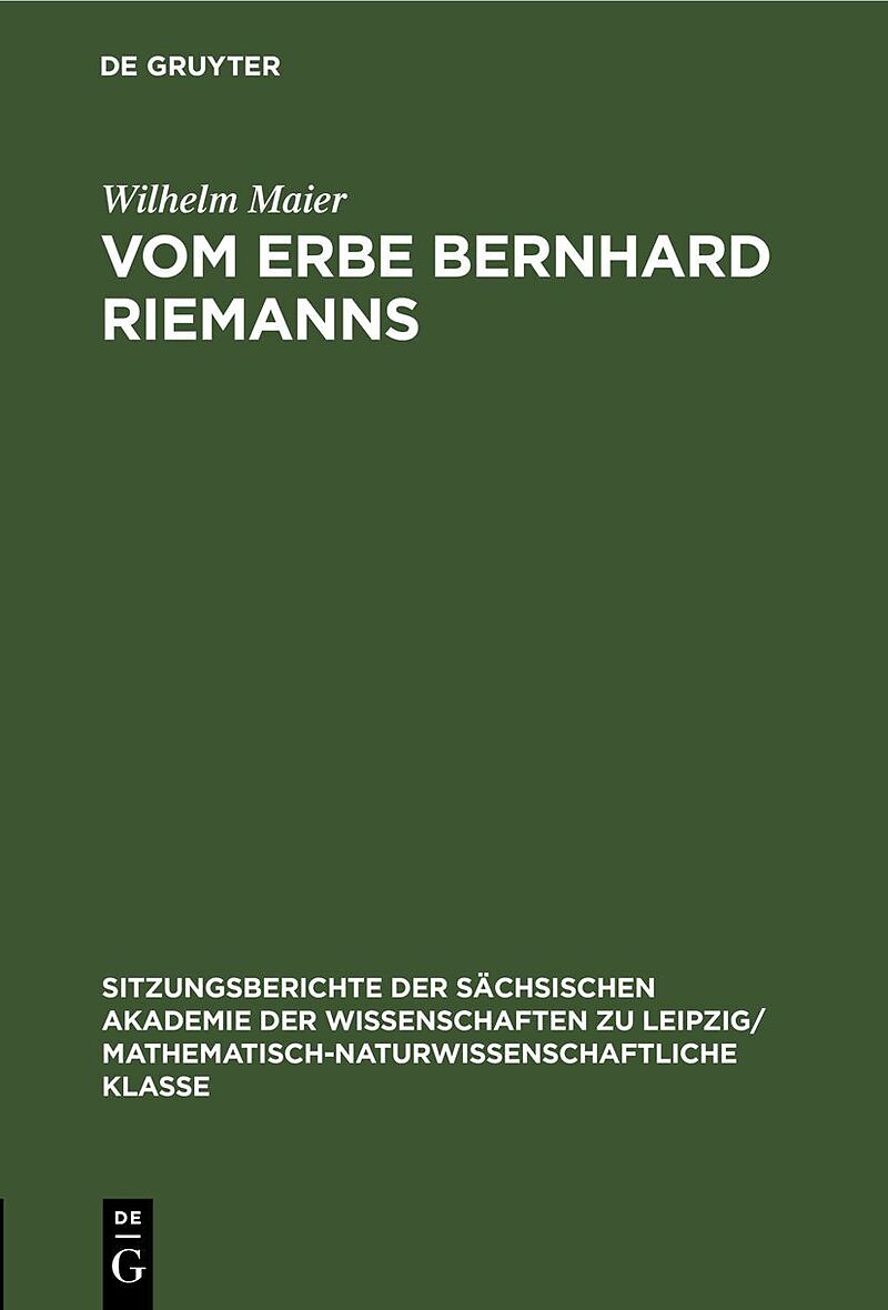 Dieser Titel, "Vom Erbe Bernhard Riemanns", ist eine wissenschaftliche Publikation, erschienen bei De Gruyter Brill. Ausführliche Beschreibung, Inhaltsverzeichnis und weitere Angaben finden Sie auf der Verlagswebsite: https://www.degruyterbrill.com/isbn/978311...