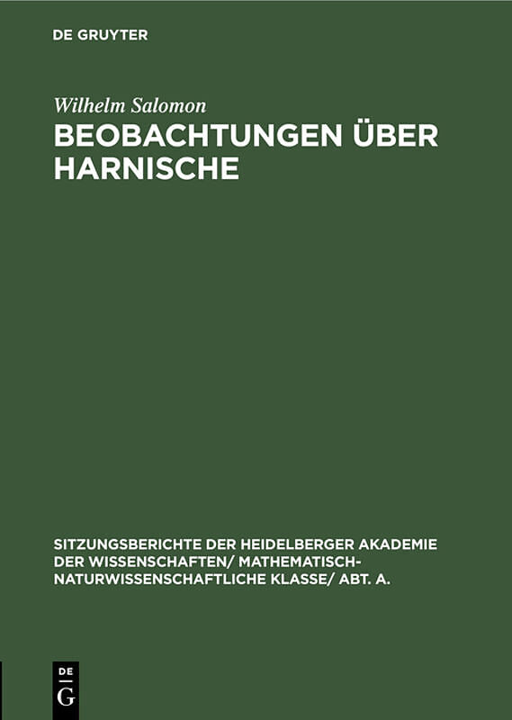 ZusammenfassungFrontmatter -- Beobachtungen über Harnische -- Backmatter